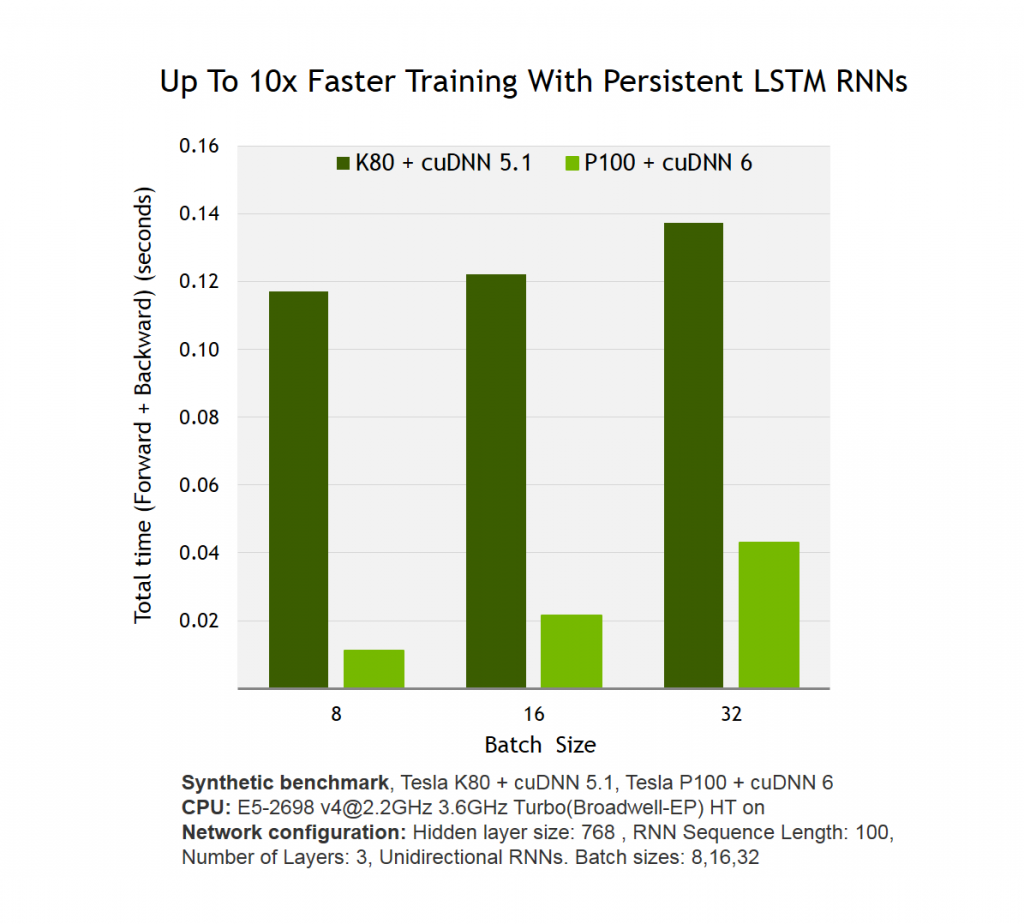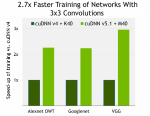در حال حاضر هم بعنوان مثال cudnnv5.1 به مقدار ۲٫۷ برابر سریعتر از ورژن ۴ هست و cudnn6 هم در کارتهای جدید (سری پاسکال) ۲ برابر سریعتر از سری ۵٫۱ هستند.